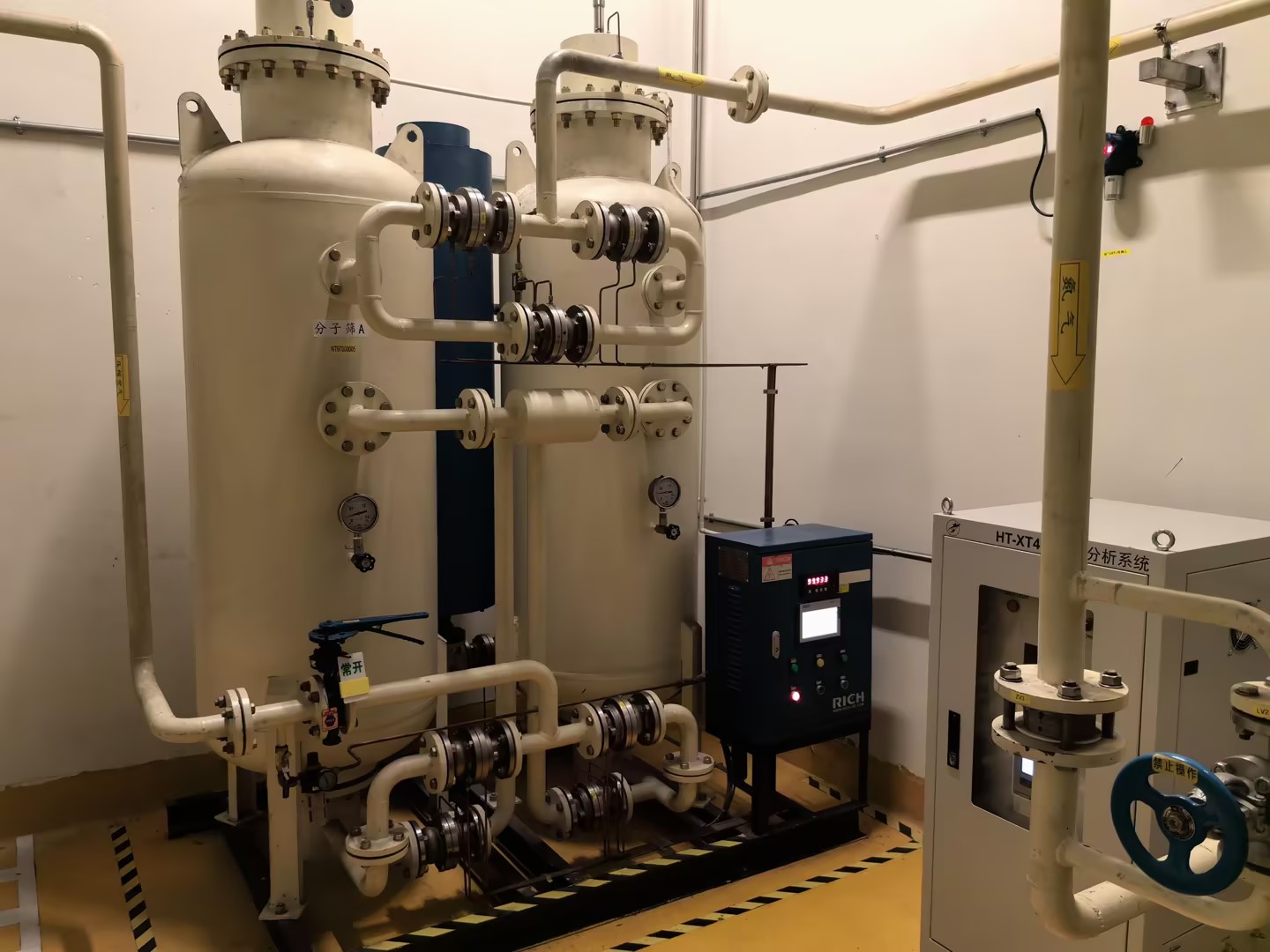 這套變壓吸附制氮機運行至今,外表潔凈、性能穩定,可見瑞氣售后團隊在設備維護和保養方面的專業與用心。
